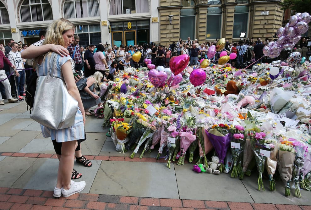 線上圖書館中收藏大量與過去恐攻案細節相關的文件,就連 2017年發生於英國的曼徹斯特體育館爆炸案的資料也在其中。圖為曼徹斯特體育館爆炸案發生後一年,民眾在案發地點附近獻上花束悼念遇難者。