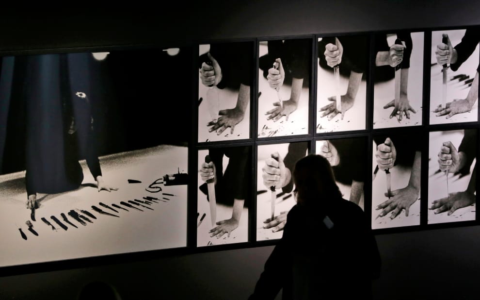 2019年9月,阿布拉莫維奇在塞爾維亞首都貝爾格勒的現代藝術博物館中展出自己歷年作品的紀錄。圖為她在 1973年的作品〈Rhythm 10〉。