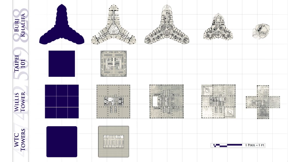 像哈里發塔這麼高的建築,在防震上更為講究,希望能減少頂層的晃動,讓在大樓內工作、生活的民眾可以更舒服。於是,工程團隊設計出一根由地下一路延伸至 156樓的六角核心柱,之後再由此向外呈放射狀延伸出三翼,讓大樓的橫切面看起來就像是Y字形,且每一側翼都互相支撐,讓整座塔樓更為穩定。