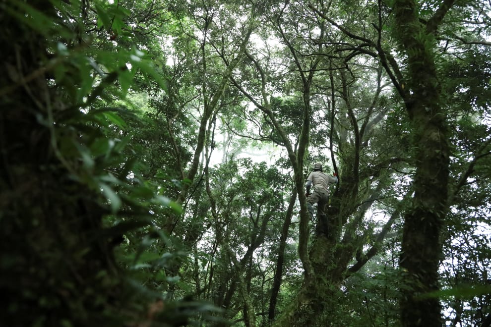 其中,在屏東縣高樹鄉辜嚴倬雲熱帶植物保種中心擔任研究助理,被稱為「植物獵人」的洪信介,是採集瀕危珍貴植物的第一把交椅,他爬樹的好身手、豐富的植物知識,讓他成了最稱職的植物獵人。
