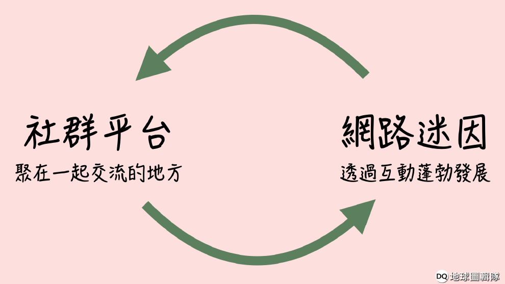 社群平台創造互動,迷因需要用互動來保持熱度。這兩者就這樣不斷互相影響下去。