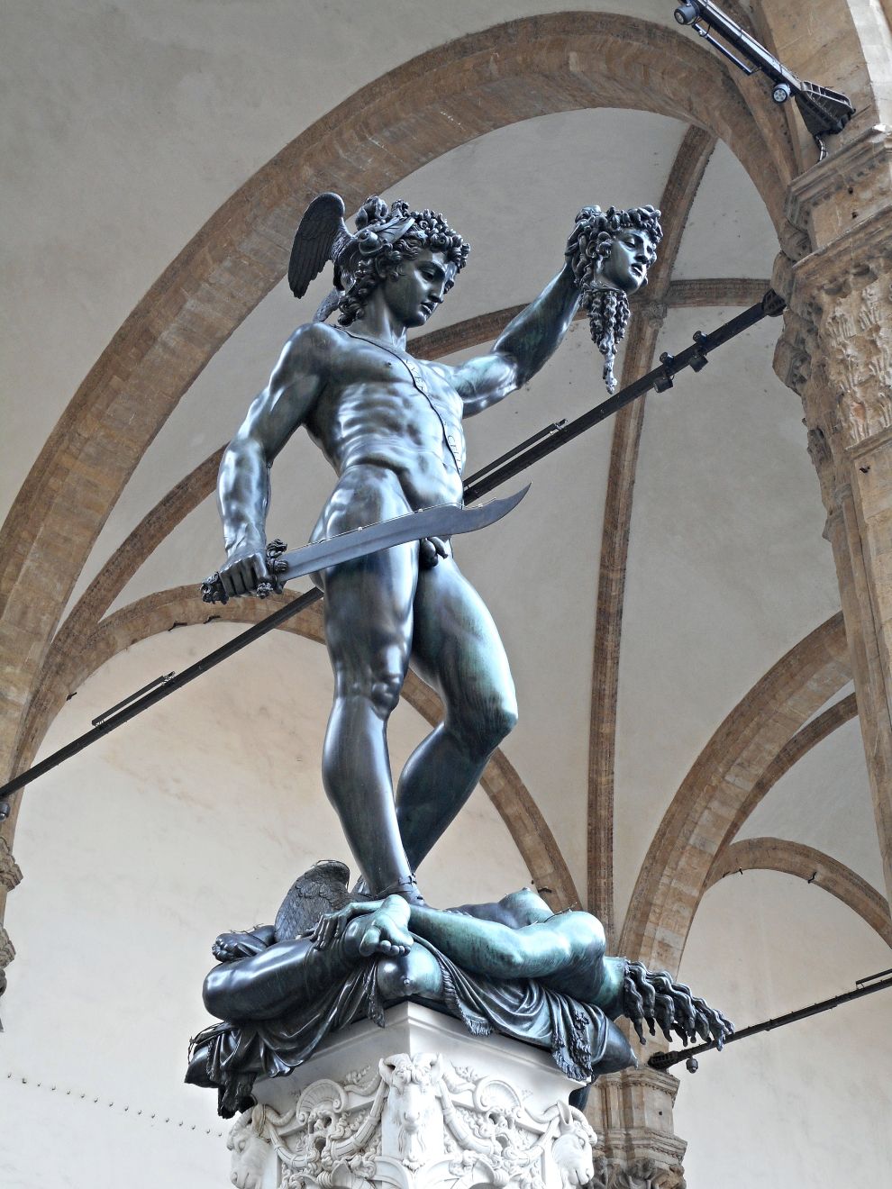 圖為義大利文藝復興時期藝術家切利尼的作品《珀爾修斯與美杜莎的頭》,現在依然展示在義大利佛羅倫斯的傭兵涼廊中,後代也有許多藝術家以這件作品和美杜莎的故事為靈感,創作出不同版本的《珀爾修斯與美杜莎的頭》。