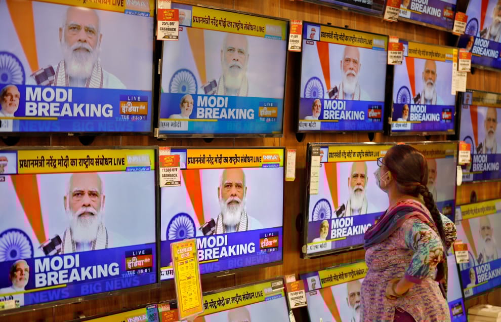 一名女子正在看印度總理莫迪的新聞轉播。在印度總理莫迪領導的右翼印度教政府內,多位內閣部長和執政黨國會議員或民意代表,都曾說出歧視女性的言論。