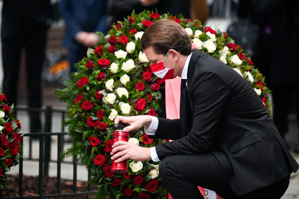 恐攻案過後,奧地利總理庫爾茨親自來到舊城區中獻花,悼念於前一晚恐攻案中喪命的死者。