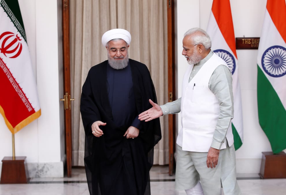 受到國際貿易制裁的伊朗,和印度也有著迂迴的對銷貿易法。圖為 2018年伊朗總統魯哈尼(Hassan Rouhani)與印度總理莫迪(Narendra Modi)的合影。