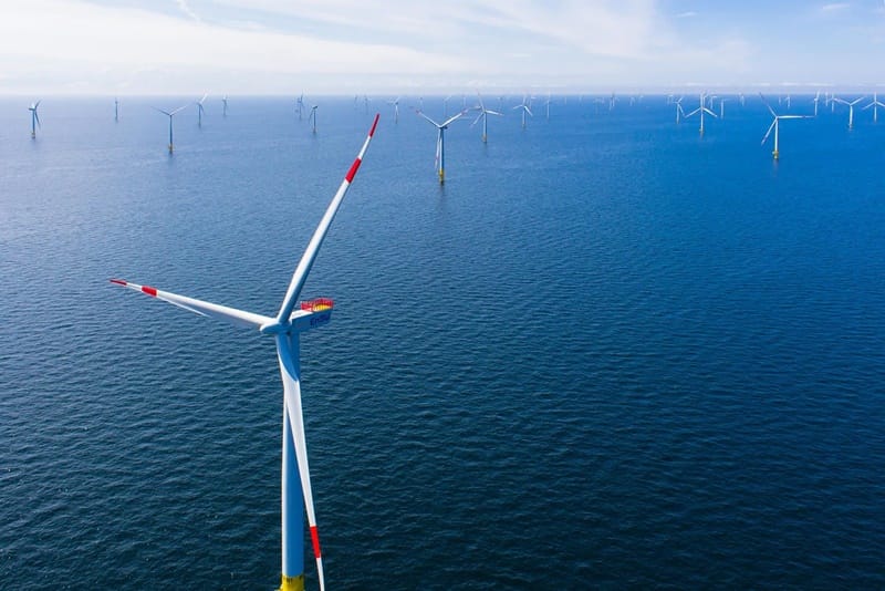德國安能(EnBW)電力公司原本經營核電和火力發電,近年改投入風力發電,到台灣和美國開拓市場。圖為安能位於波羅的海的Baltic 2風場。(EnBW提供)