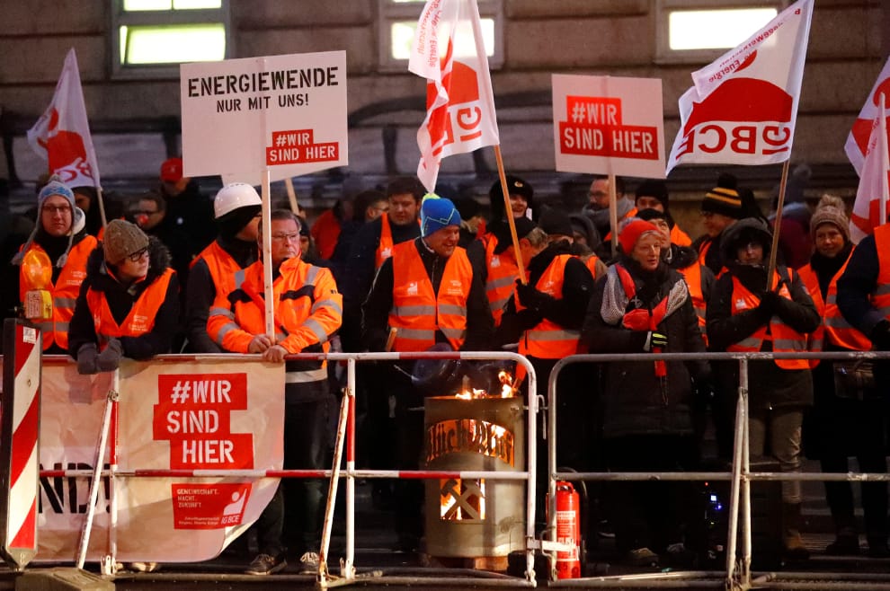 在能源轉型路上,德國仍有重重挑戰需要克服。圖為 2019年1月在柏林,德國礦業、化工和能源產業公會(IG BCE)抗議政府打算關閉德國最後一座燃煤發電廠。