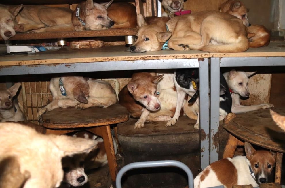 仔細看這些狗的狀況,牠們的健康狀況都說不上好。有的罹患皮膚病、出現傷口,有的則骨瘦如柴。