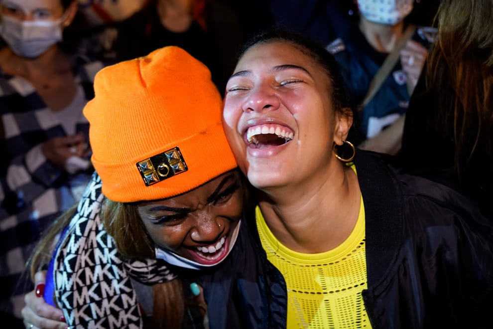 2020年11月7日,兩名年輕人在華盛動特區的「黑人的命也是命」廣場慶祝選出新總統。