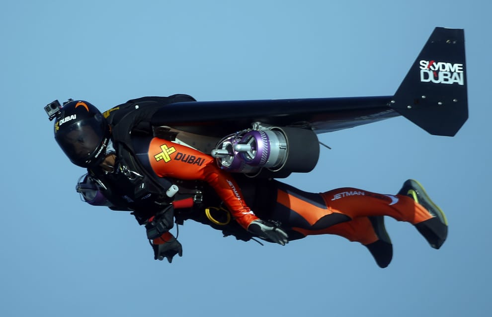 對杜拜當地人來說,他們對「杜拜噴射飛人」或瑞費大概都不會太陌生,特別是瑞費常常穿著噴射器穿梭在杜拜城市之間,最知名的幾次包括和阿聯酋的空中巴士A380「並駕齊飛」,還有從平面往上飛 1,800公尺俯視杜拜、再用降落傘降落。