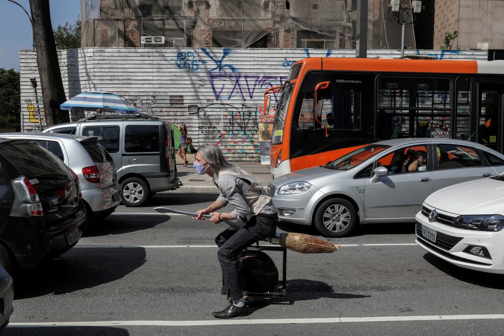 在交通狀況惡名昭彰的巴西第一大城聖保羅(Sao Paulo),兩名男子發明出一種移動的新方法,且這種新方法要說有多高調,就有多高調,因為他們搭乘的不是一般的車輛,而是一根掃帚。