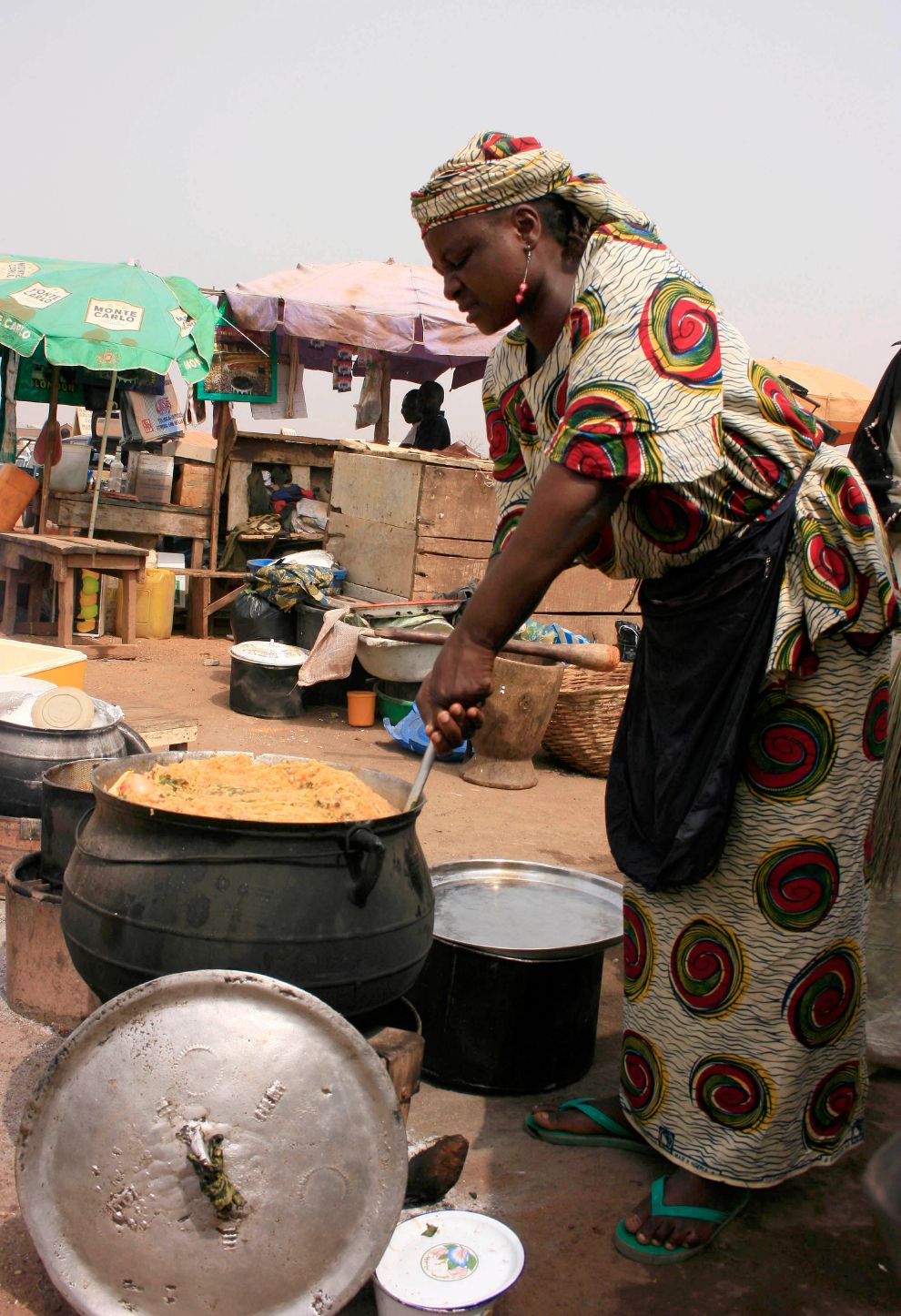 在位於奈及利亞北部的卡諾市(Kano),一名小販正在烹煮喬勒夫飯。