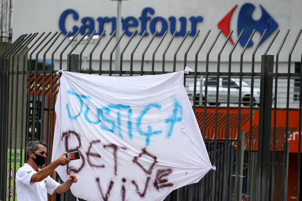 Um homem negro foi espancado e morto por duas seguranças brancas em uma unidade do supermercado Carrefour em Porto Alegre , no Rio Grande do Sul, na noite de quarta-feira, 19. #ConsciênciaNegra #carrefour #20nov pic.twitter.com/gAqLYNiTxy