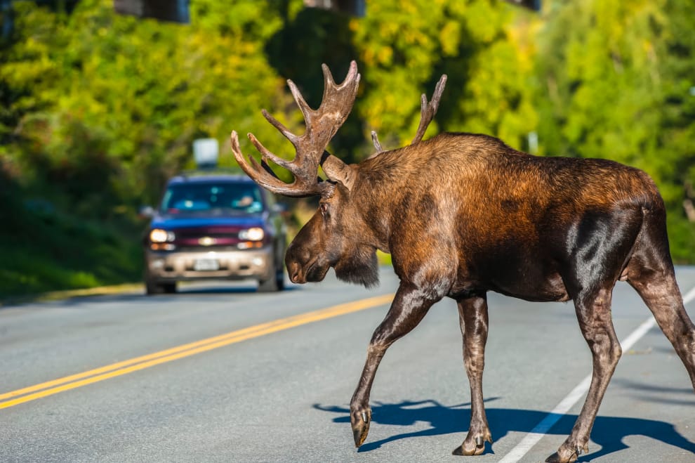 賈斯珀國家公園建議駕駛們,如果發現一隻駝鹿不斷接近,最好的辦法就是按幾聲喇叭把牠們嚇走,或是發動引擎離開現場。