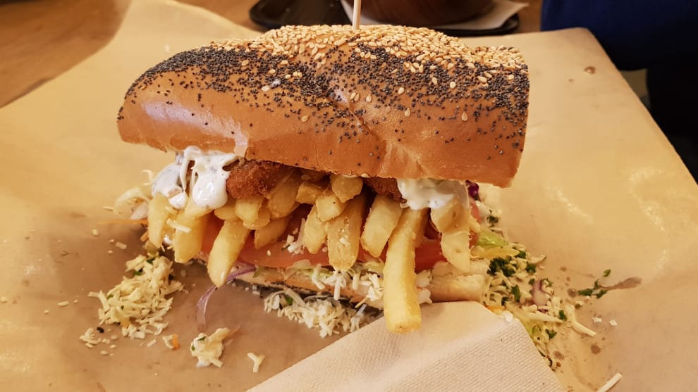 在南非大城開普敦南部郊區阿斯隆(Athlone),潛艇堡店「超級水產」(Super Fisheries)通常會在早上 8點30分左右開始營業,但常常店家門一開,小小的店面就會湧進久候多時的饕客,等著享用他們的招牌菜:「蓋茲比」(Gatsby)。