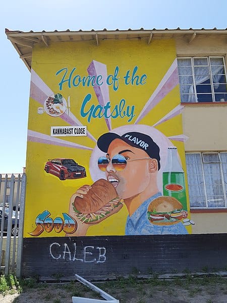 「蓋茲比」是開普敦當地最出名的街頭國民美食之一,是一種尺寸長達 30公分的巨大潛艇堡。這種巨無霸尺寸當然不是給一般人獨自享用,人們通常都會約親朋好友一同分食,因此店家大多會幫忙把蓋茲比切成四份,方便客人們分食。
