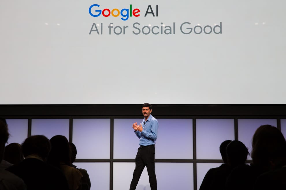 Google AI部門主管卻又提供另一種說法,表示格布魯的論文有「忽視太多相關研究」以及太慢送審的問題,才讓審查小組決定將其退件。圖為Google於 2018年舉辦的「Google造福社會」(Google's AI for Social Good)活動。