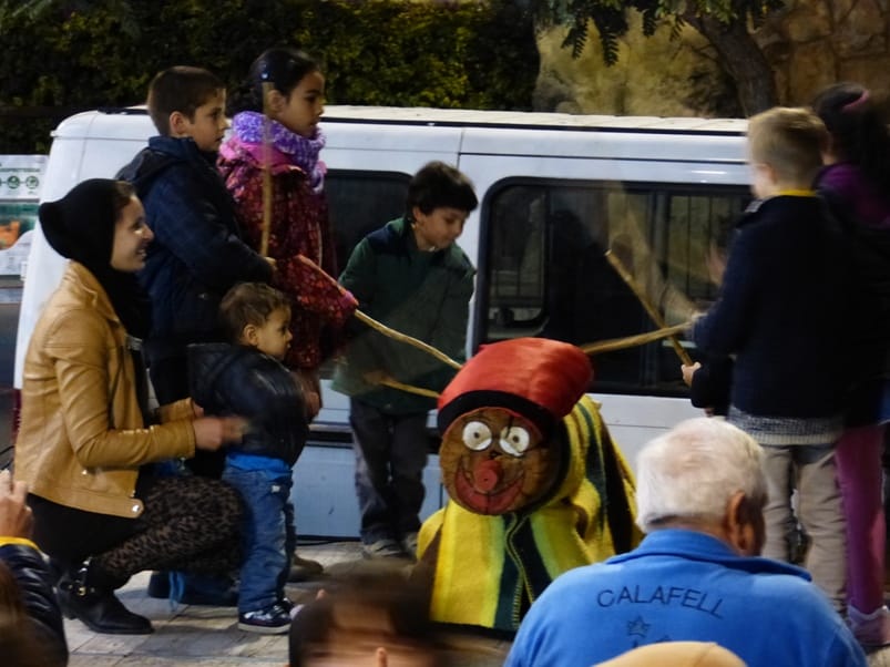 網友calafellvalo祈禱結束後,孩子們會拿出棍棒,圍著聖誕木一邊唱著傳統民謠,一邊毆打聖誕木。這首民謠的歌詞是這樣的: