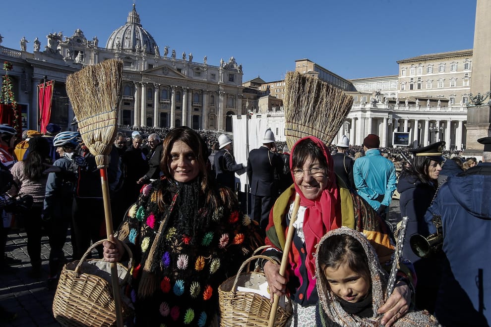 在梵蒂岡,人們紛紛打扮成貝法納婆婆的樣子,前來參加教宗的公開祈禱活動。