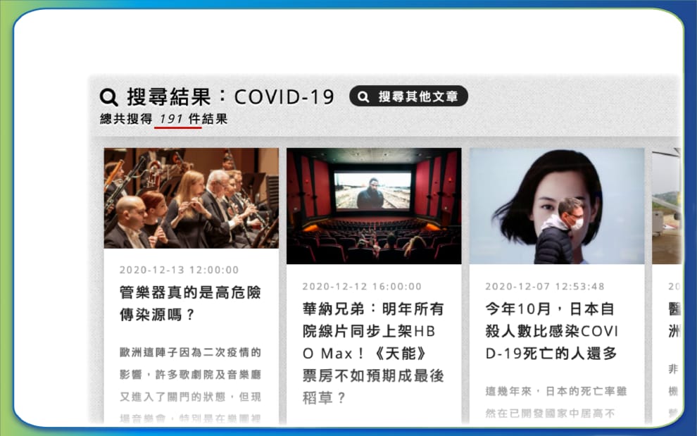 截至目前為止,DQ在這一年已經就COVID-19(武漢肺炎)寫了快 200篇文章,數量之高可說大大超越許多議題。不論是COVID-19、武漢肺炎,到後來的口罩、恐慌性購買,或是接下來的餐廳社交距離妙招、觀光業寒冬潮、無目的旅遊等等,這些都曾是大家密切討論、到後來完全習以為常的話題——那種習慣的感受多少也反映在了文章關注度上,「到底要不要再寫一篇跟疫情有關的文」,也成為編輯台每日選題的煩惱。