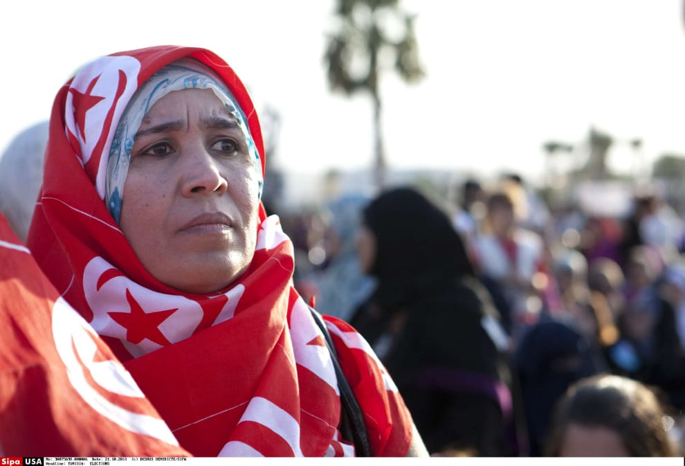 2011年10月21日,突尼西亞民眾在首都突尼斯迎接獨裁政府倒台後的第一場民主選舉。
