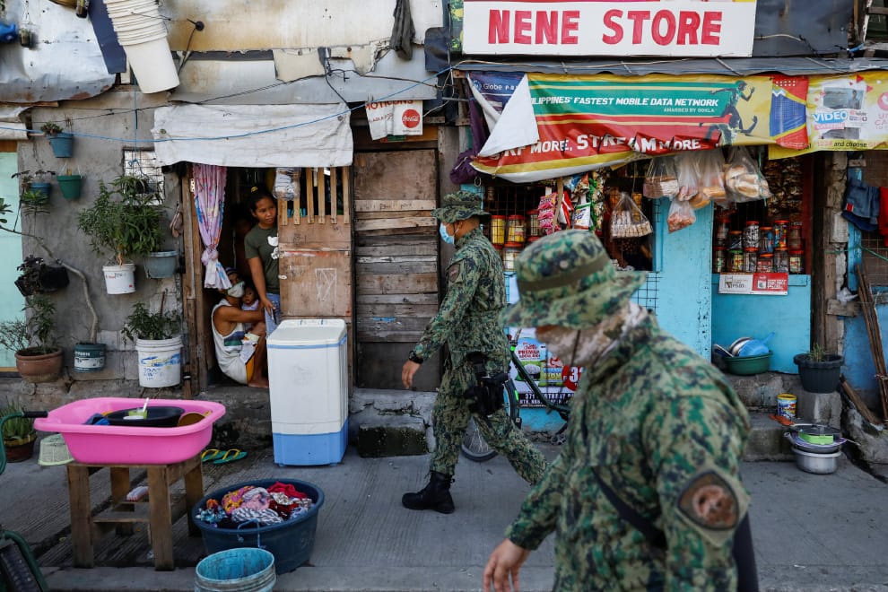 在馬尼拉都會區,菲律賓警察正在執行社區巡邏任務,確保民眾遵守政府頒布的防疫封鎖令。