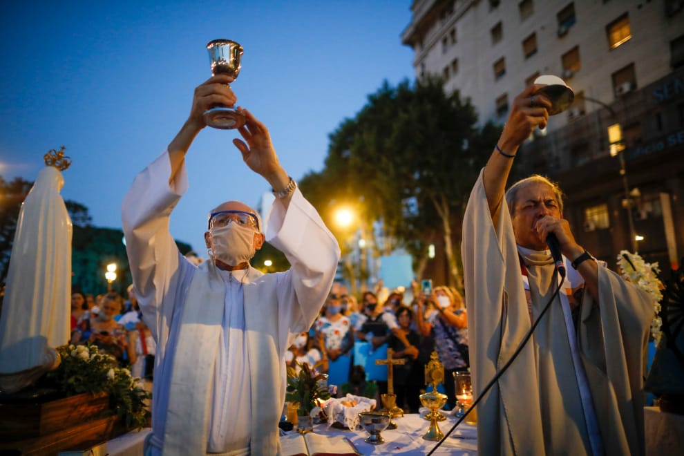 在國會外等待投票結果的天主教神父們,趁空舉行祝禱彌撒。