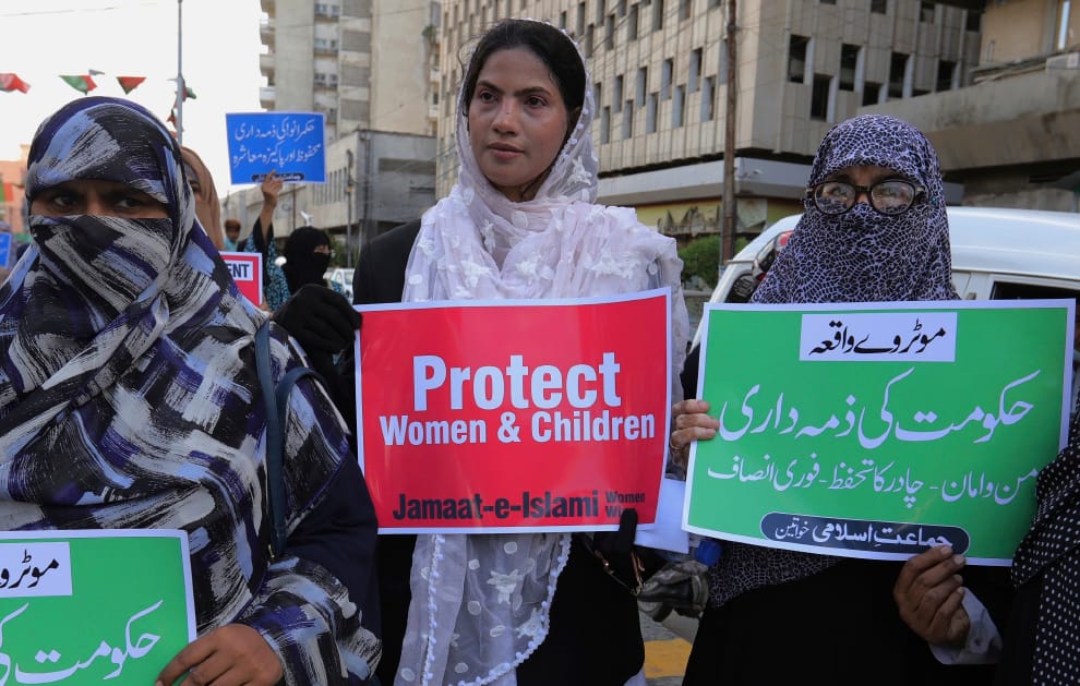 去年 9月,一名示威者帶著「保護婦女、孩子」的標語,參加一場抗議性暴力問題的示威。這場抗議促成巴基斯坦總統下達行政命令,其中一部分便禁止調查人員日後再對性侵受害者實施貞操測試。然而,這項行政命令除非得到國會事後追認,否則效力只有 120天。