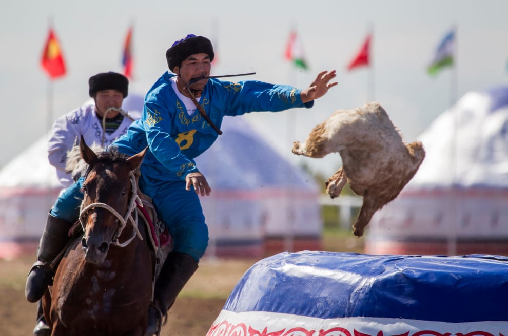 在一般哈薩克民眾的印象裡,他們對不同性別的服飾、行為都有根深柢固的印象,並不容易撼動。圖為 2013年第一屆亞洲盃科帕爾大賽(Asian Kokpar championship),科帕爾是中亞遊牧民族間盛行的遊戲,遊戲所使用的「球」通常會是一隻斬首的羊。雙方會在比賽時間中試圖將「球」投入對方球門,比賽時間結束後,得分高者就能贏得比賽。