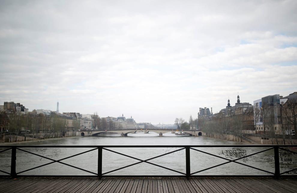 在巴黎全程封鎖期間,塞納河上空無一人,沒有觀光船,也沒有釣客。