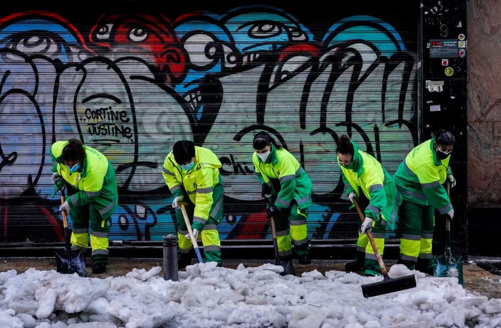 最近,西班牙出現 50年來最大規模的暴風雪。一等雪勢稍歇,道路工作人員便一同上街清除路面積雪。