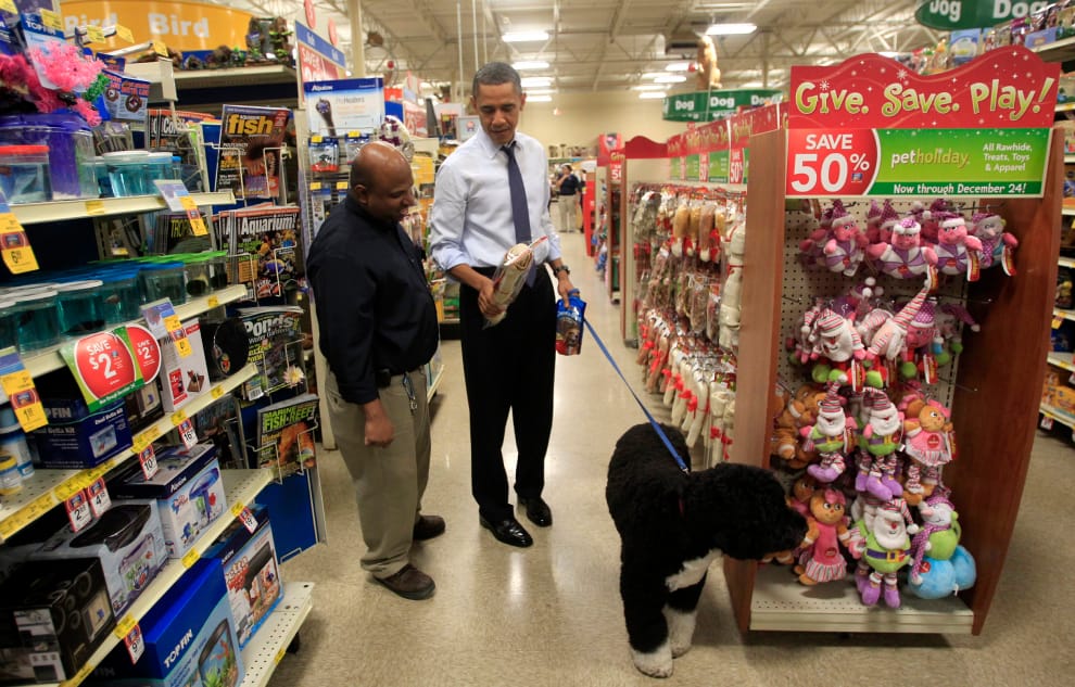 歐巴馬(Barack Obama)是近代出了名的愛狗總統,一家人與狗狗波(Bo)、桑尼(Sunny)的鏡頭從來沒少過,兩隻狗也稱職地扮演「第一寵物」的角色,包括現任教宗方濟各(Pope Francis)在內的許多領袖都曾與牠們碰面。