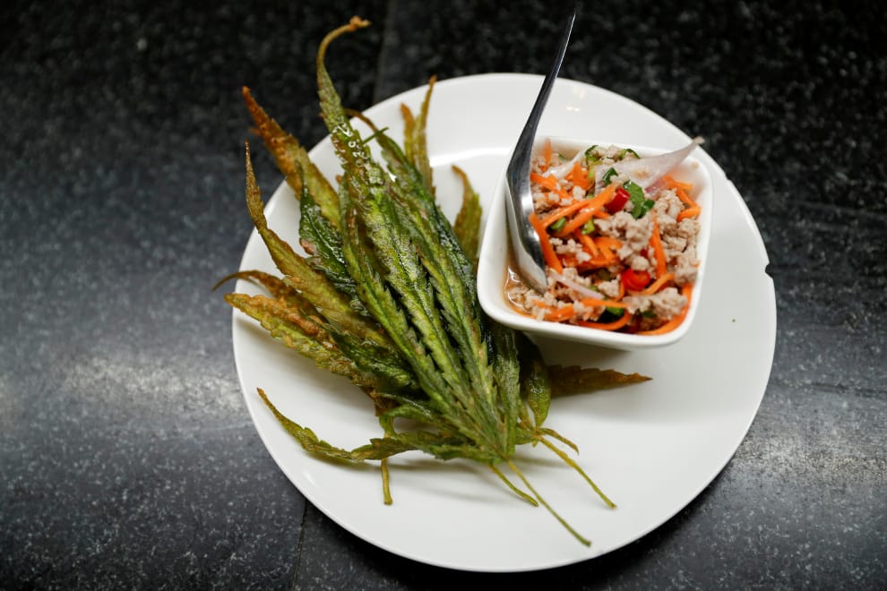 作為經濟潛力龐大的作物,泰國政府正慢慢擴大大麻的適用領域。2020年,泰國的麻醉藥管制局(The Narcotics Control Board)將大麻的根、莖、葉等,自麻醉藥清單中移出,也才使得大麻可以直接入菜,並成為如今的新興料理食材——不過目前依舊只有經過政府同意的人或機構才能培育或銷售大麻。