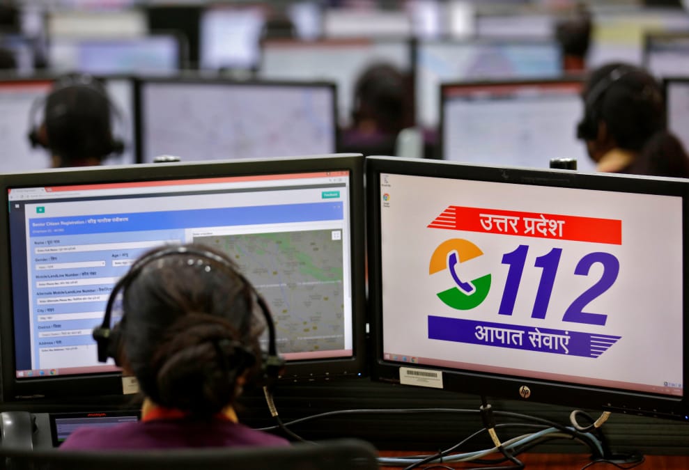 圖為勒克瑙的報案中心,112是印度的緊急求助電話號碼。