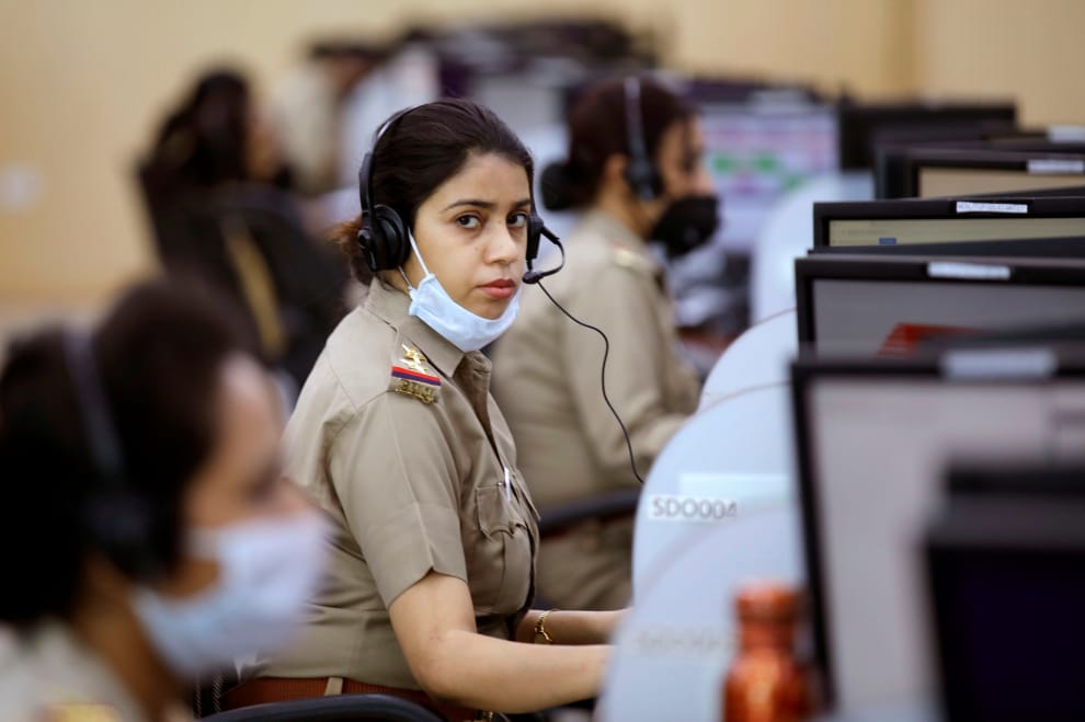 勒克瑙的警方決定不再被動等待性騷擾案件的通報,而是主動「找出」正在受害的女子。圖為勒克瑙的報案中心,警員們正在處理民眾的來電。