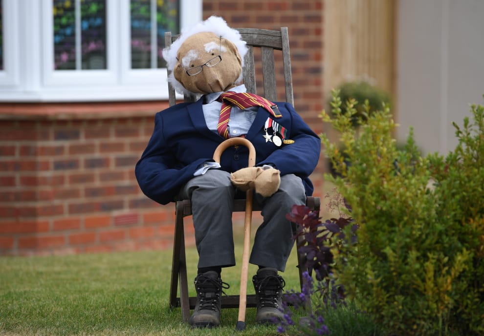 在某戶人家的院子裡,擺上了穆爾爺爺的人偶,感謝他對英國的付出與貢獻。