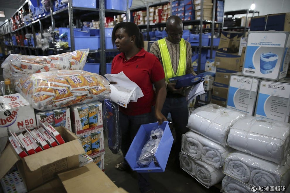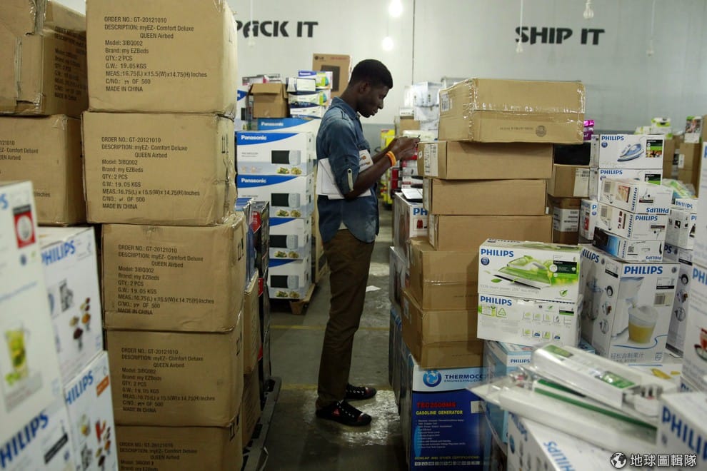 非洲的網路購物平台Konga的員工正在清點貨物。