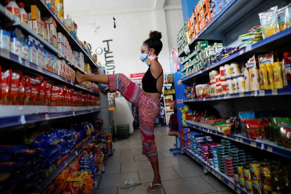 路透社 / 達志影像在超市貨架上挑選東西,一般人用手,布埃諾用腳。