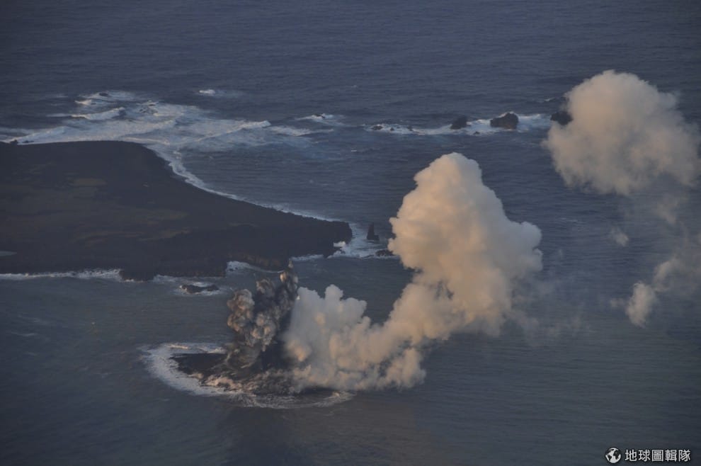 地球圖輯隊新浮出的小島仍不斷冒出火山熱氣,照片左上方的就是小笠原群島中的西之島。
