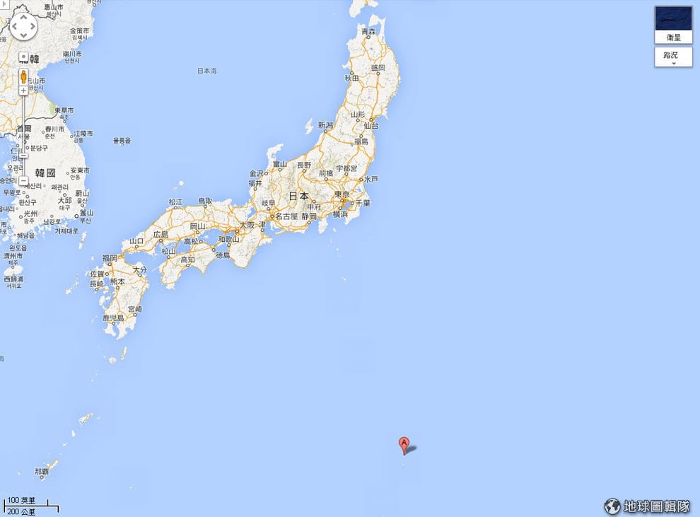 圖片中的標記點就是這次小島的位置,位在距離東京約970公里遠的海面上。