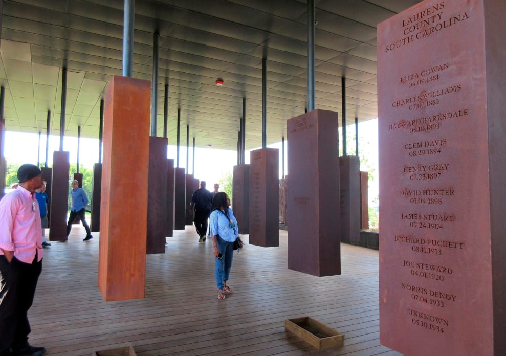 圖攝於阿拉巴馬州蒙哥馬利郡(Montgomery, Alabama)的國家和平與正義紀念館(National Memorial for Peace and Justice),該館旨便是要紀念那些遭到私刑處決的人們。