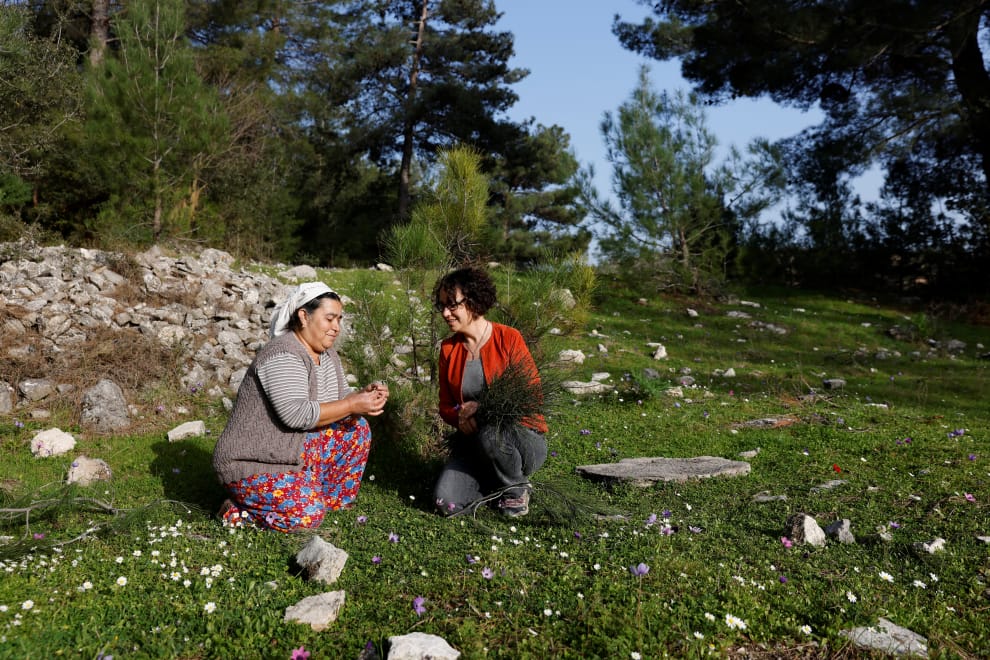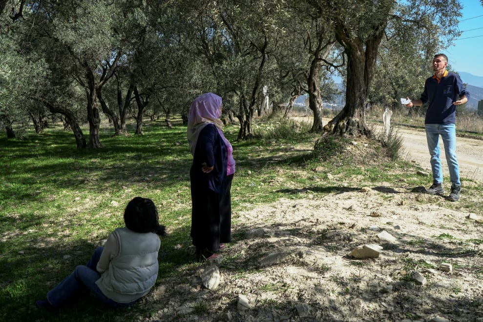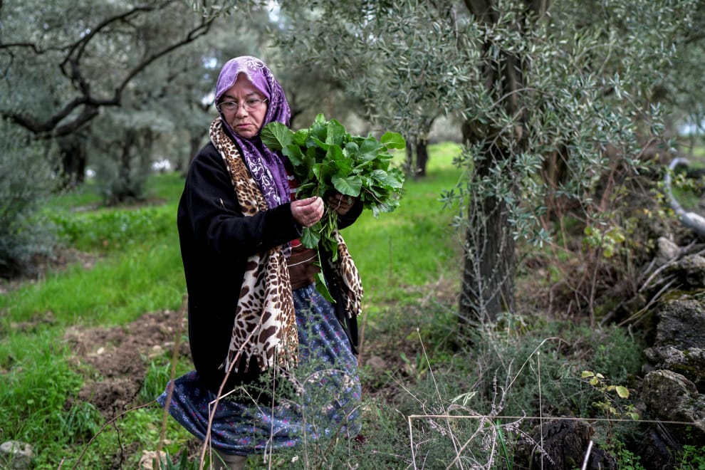 狄米瑞正在她的橄欖林地裡摘除雜草。