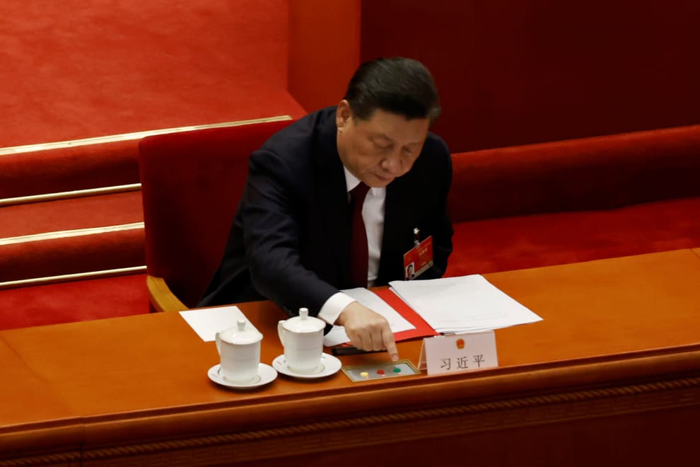 周四這一天,中國人大通過了《全國人民代表大會關於完善香港特別行政區選舉制度的決定》,揭示了未來香港選制的改革方向。圖為《全國人民代表大會關於完善香港特別行政區選舉制度的決定》表決時,中國領導人習近平也伸手按下投票器上的按鈕。