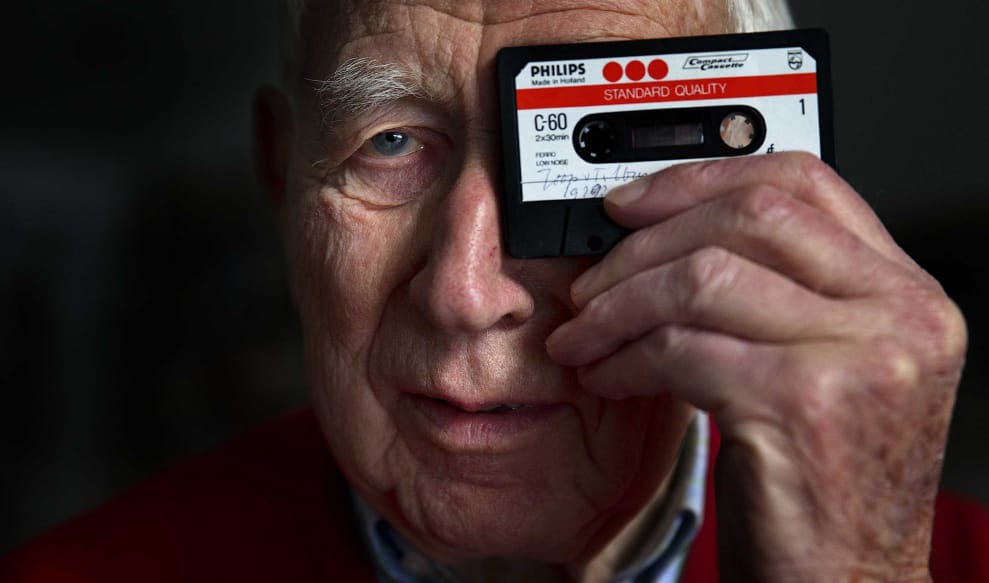 奧滕斯和卡式錄音帶合照,這張照片攝於 2013年,是卡式錄音帶面世的 50周年。