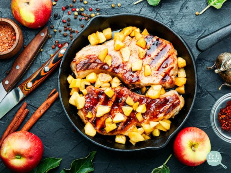 豬排佐焦糖蘋果醬汁是西方常見的吃法。