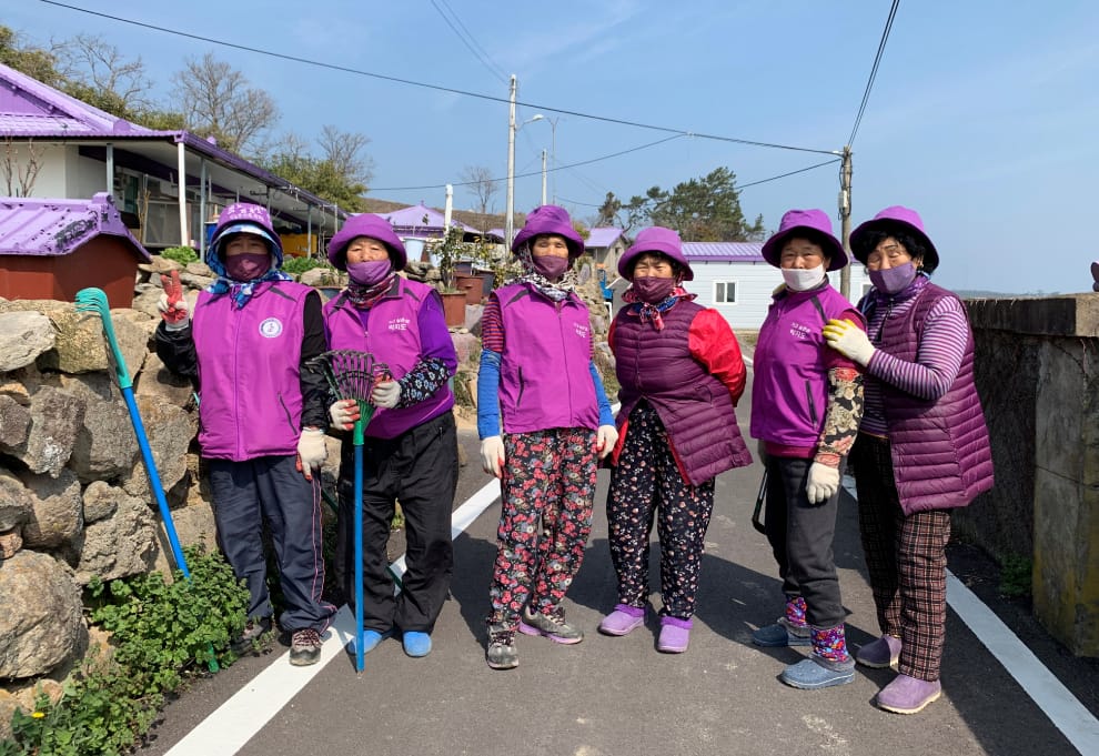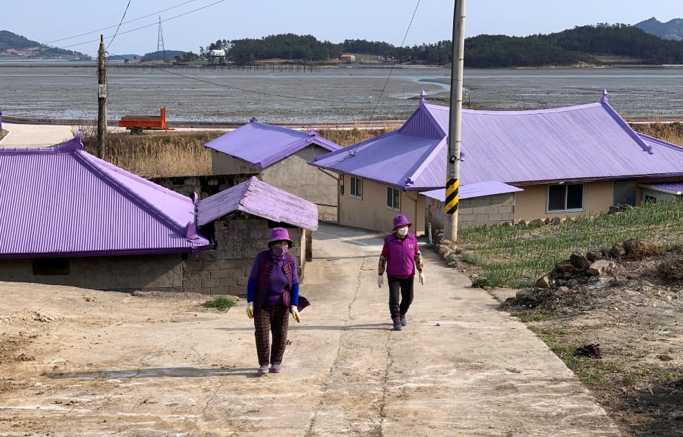 儘管島上長輩都已經上了年紀,但他們也熱情滿滿地投入家園變身計畫中。現年 88歲的島民鄭順心(Jung Soon-shim,音譯)就熱情洋溢地表示:「每天早上我都會換上一身紫色的服飾,就連我的內衣褲、鞋子也不例外,這真的讓我很開心。」