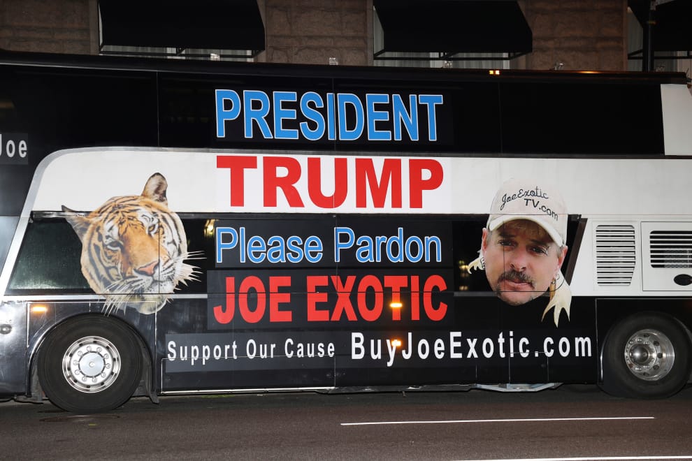 《虎王》紀錄片的主角怪人喬(Joe Exotic)在 2019年因為虐待動物以及密謀買兇殺害大貓救援執行長巴斯金(Carole Baskin),被判有期徒刑 22年。2020年,怪人喬的法律團隊開著巴士來到華盛頓特區,希望時任美國總統的川普(Donald Trump)能夠特赦他。