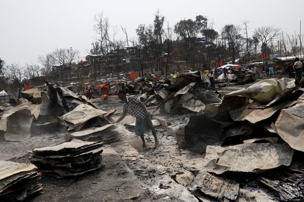 上周一(22),位在孟加拉科克斯巴扎爾(Cox's Bazar)城市的洛興雅難民營無預警發生火災,將大片地區的庇護所全數燒毀,約莫 400人因此下落不明,而巴努 11歲的兒子卡利姆(Mohammed Karim)就在其中。