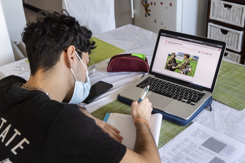 為了降低感染COVID-19(武漢肺炎)的風險,瑞士新兵們的新訓改成在家看線上軍事教育課程。