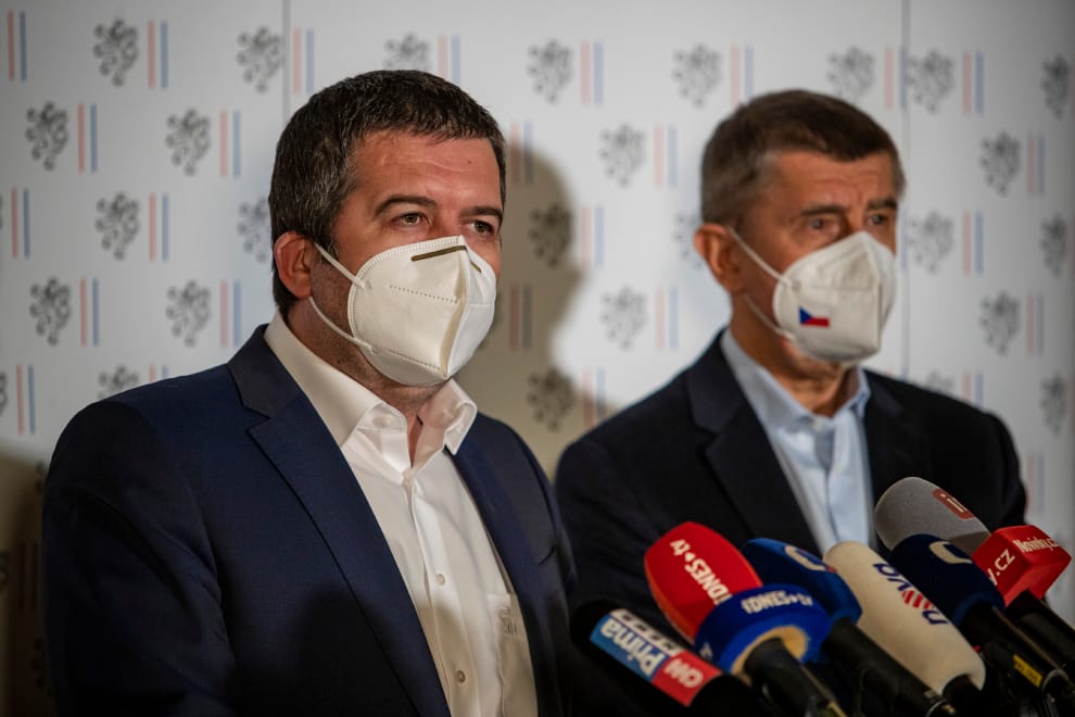 這起外交衝突爆發後,捷克在採購俄製COVID-19(武漢肺炎)疫苗以及日後核電廠的升級計畫上,都受到了波及。圖為捷克外交部長哈馬切克(左)和捷克總理巴比斯(Andrej Babis,右)一起召開記者會,宣布捷克驅逐俄國外交人員的決定。